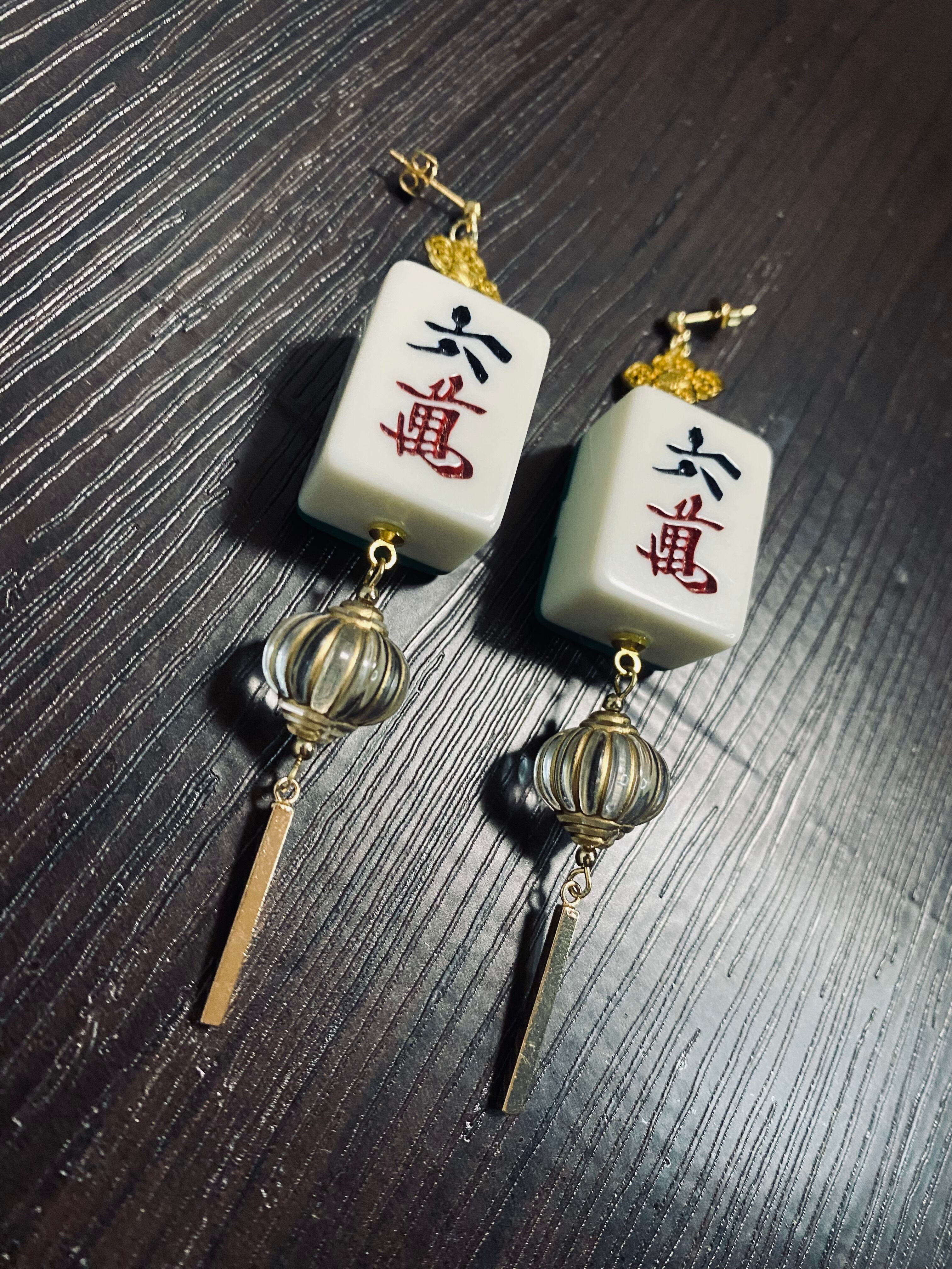 ランタンのようなビーズとシャープなスティックチャームが耳元で軽やかに揺らめきます。