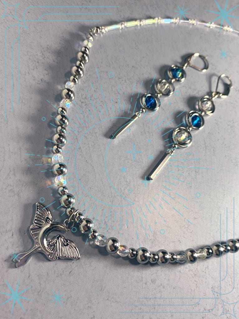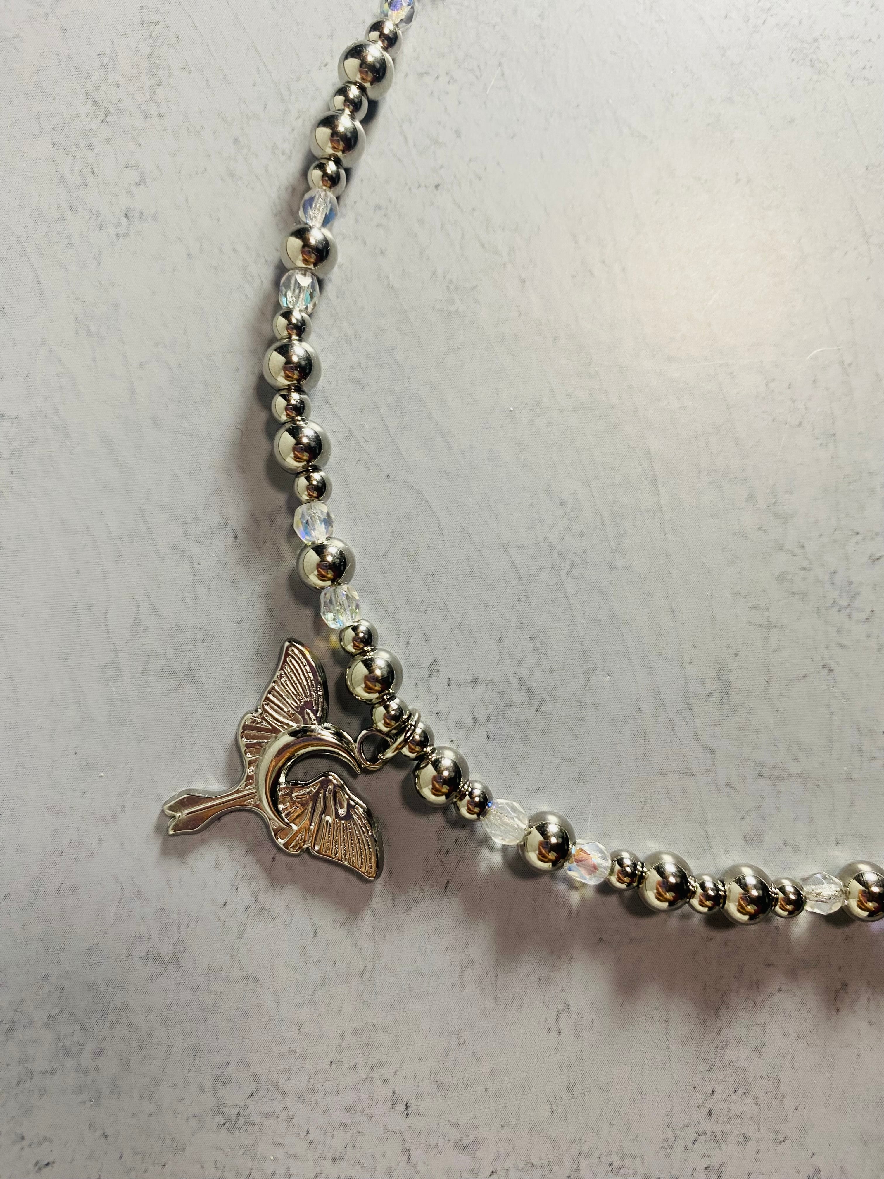 蝶(オナガミズアオ)と月のチャームはアルテミスの象徴。